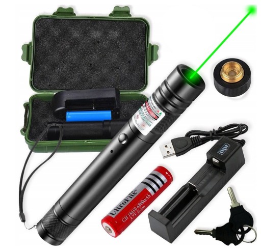 WSKAŹNIK LASEROWY LASER ZIELONY MOC 50000 mW 100km Model AKUMULATOR BEZPIECZNY KLUCZYKI