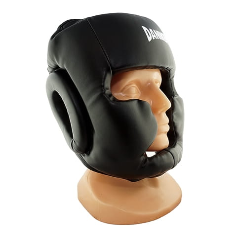 Kask SPARRING-PRO PU został wykonany z bardzo wytrzymałej skóry syntetycznej. Kask posiada ochronę policzków i brody, dzięki czemu świetnie nadaje się do sparingów. Górna część ochraniacza posiada dodatkową ochronę z grubej warstwy pianki, która zabezpiecza przed kopnięciami i uderzeniami z łokcia. Wewnętrzna część kasku pokryta jest miękkim materiałem syntetycznym, który zapobiega ślizganiu i przesuwaniu się kasku.