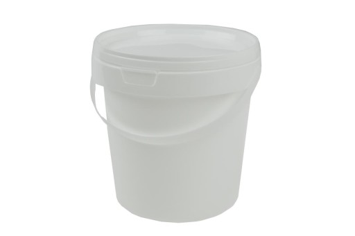 Okrągłe wiadro z uchwytem niezastąpione w sklepach z lakierami i w warsztatach wyposażonych w mieszalniki.