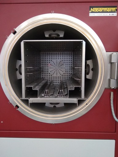 Piec do katalitycznego usuwania lepiszcza części odlewanych metodą wtrysku proszku metalicznego lub ceramicznego. Spoiwo zawarte w ładunku ulega rozkładowi chemicznemu za pomocą kwasu azotowego i odparowaniu w postaci gazu.
