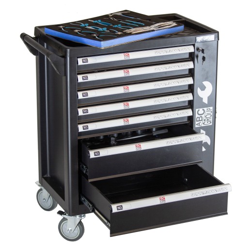- nowoczesny wózek narzędziowy ABC Group o mocnej i sprawdzonej konstrukcji, przeznaczony do profesjonalnego zastosowania w warsztatach i serwisach motoryzacyjnych oraz przemyśle