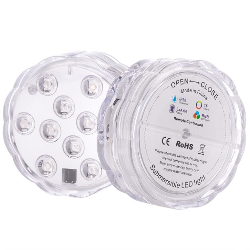 - Posiada 10 mocnych i trwałych diod LED RGB, które skutecznie podświetlą wodę w basenie czy jacuzzi.