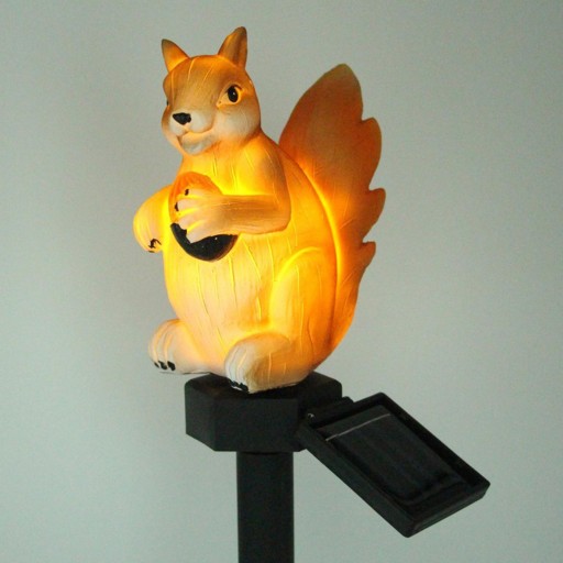 Urocza statua wiewiórki z panelami słonecznymi, dzięki którym dom może nocą.