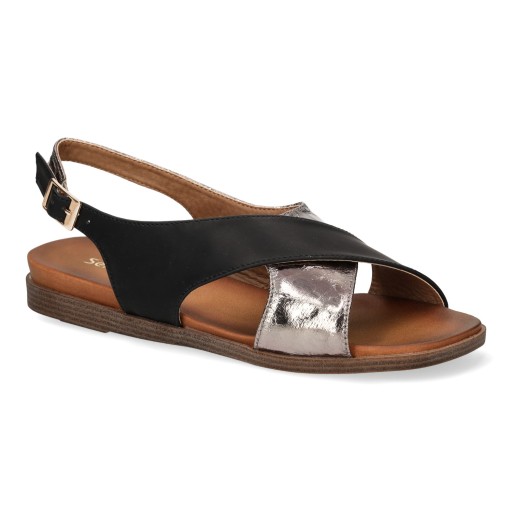 SANDAŁY DAMSKIE ELEGANCKIE NA PŁASKIM OBCASIE SERGIO LEONE CZARNE
