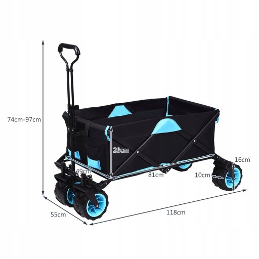 ✅Stworzony z wodoodpornej tkaniny i stali węglowej, wózek jest wytrzymały i niezawodny.