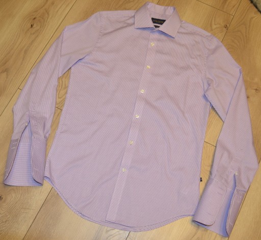 ELEGANCKA, MĘSKA KOSZULA W ODCIENIACH KOLORU FIOLETOWEGO, EXTRA ODSZYTA, SYGNOWANE GUZIKI, MANKIETY ZAPINANE NA SPINKI, 100% BAWEŁNA SATYNOWA, 100% ORYGINAŁ, NOWY MODEL, TAILORED FIT.