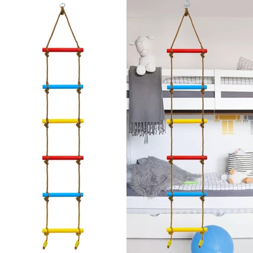 Idealny prezent dla dzieci — ta drabinka z nylonowej liny z 6 szczeblami to wspaniały pomysł na prezent. Dobrze jest czerpać radość ze wspinaczki, jednocześnie poprawiając równowagę, koordynację i gibkość.