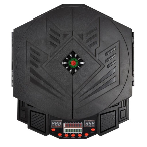 Tarcza do rzutek dla 1-8 graczy, zamykane drzwi ochronne, 2 wyświetlacze LED, 27 gier z 216 opcjami gry, funkcja automatycznego wyłączania, zasilacz.