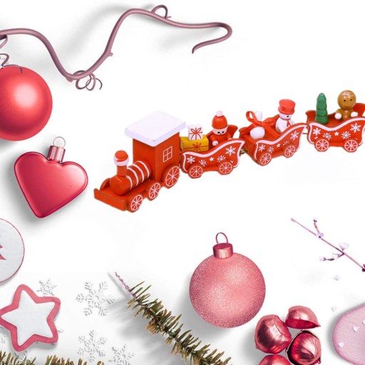 . Świąteczny drewniany czterosekcyjny mały pociąg Dekoracja na choinkę Idealn