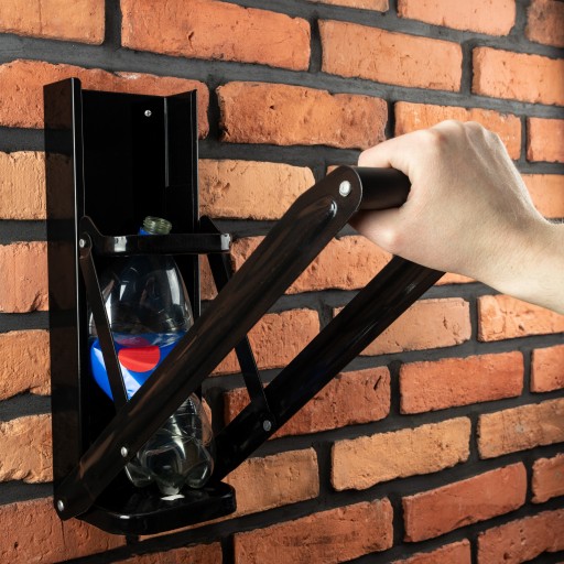 - Zgniata aluminium, plastik oraz karton; - Ma wbudowany otwieracz do butelek. Przed użyciem należy zamontować go na ścianie lub na drewnianej powierzchni. Wkręty i kołki znajdziesz w zestawie. Postaw butelkę, karton lub puszkę, pociągnij za dźwignię i gotowe.