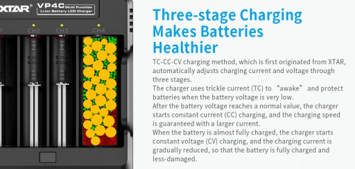 Ładowarki od innych producentów mogą znacząco podnosić temperaturę ładowanych ogniw podczas ładowania. Zbytnie nagrzewanie się ogniw może powodować ich szybsze zużycie. Projektując ładowarkę VP4, firma Xtar poszła o krok dalej od konkurencji, rozwiązując ten problem w prosty sposób: zastosowano zasilanie z zewnętrznego zasilacza. Dzięki temu temperatura ładowanego w VP4 akumulatorka wzrośnie najwyżej o 15 stopni.