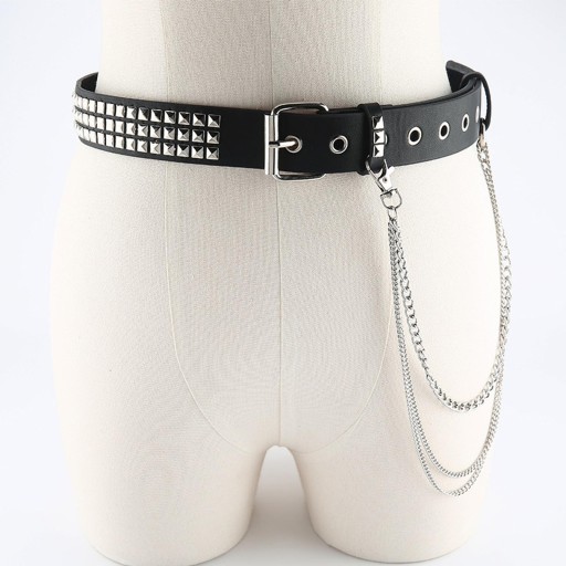 Cecha: Zapięcie na klamrę, 3 rzędy metalu nabijanego ćwiekami, pasek