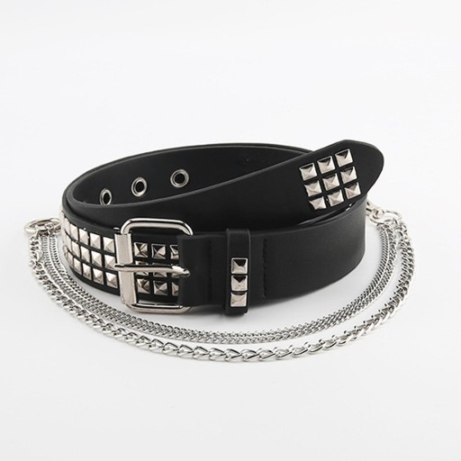 Punk pasek z ćwiekami pasek z nitami regulowany pasek z oczkiem przelotka Fashion Design czarny rozmiar M