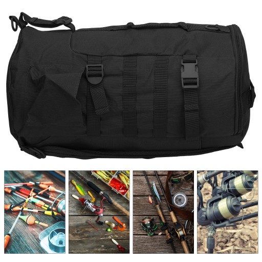 Plecak na sprzęt wędkarski Przenośna cylindryczna torba na wędkę o dużej pojemności z uchwytem na wędkę w kolorze czarnym