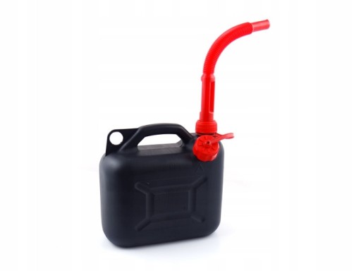 Kanister posiada korek przymocowany na pasku. Posiada dodatkowo lejek, który umożliwi przelanie paliwa bezpośrednio do baku samochodu.