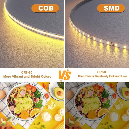 COB 5 m , liczba świateł na metr 320, a taśma LED COB o ciepłej barwie 3000 K wytwarza ciągły efekt strumienia świetlnego. Dwustronna płyta miedziana ma wysoką odporność na wysokie temperatury i jest bezpieczna w użyciu