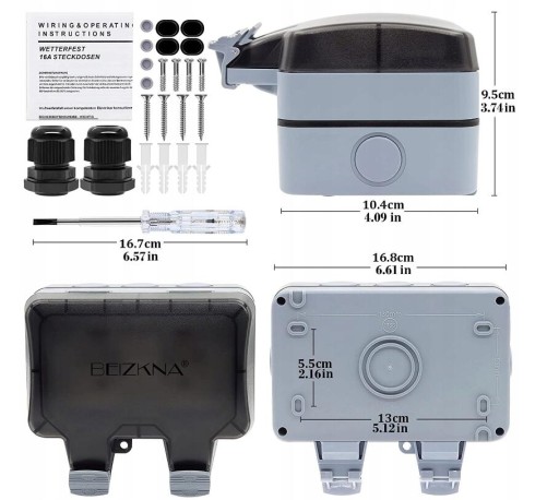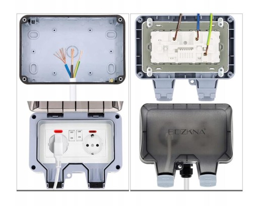 Jest to wodoszczelne zewnętrzne gniazdo wtykowe IP66, które nadaje się do użytku na zewnątrz, parku, ogrodów, warsztatów i łazienek.