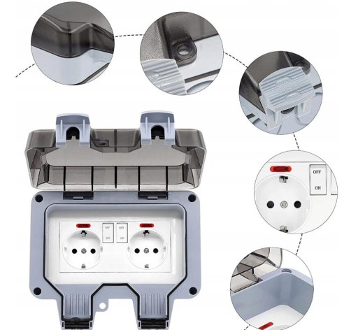 IP66 gniazdko zewnętrzne z niezależnym przełącznikiem.