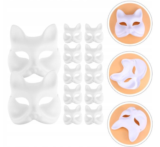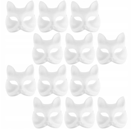 10 sztuk twarz kota pół twarzy niedokończone Paintable papierowe maski puste maski maski na maskaradę na imprezę Halloween Cosplay