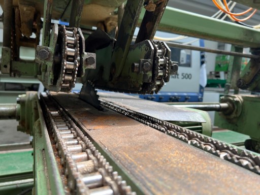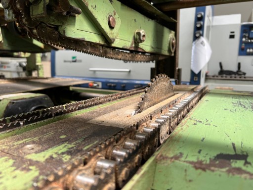 - Posuw materiału za pomocą łańcuchów