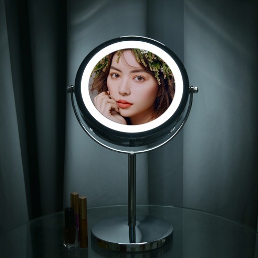 Agdod 10x powiększające lustro tożsamościowe z oświetleniem LED 360 stopniowy obrót dwustronny 7-calowe lustro tożsamościowe LED lustro tożsamościowe (srebrne)