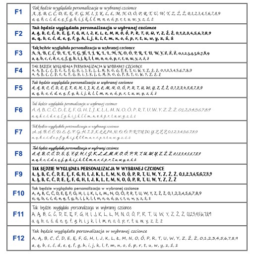 2.Podaj treść GRAWERU uwzględniając czcionkę i grafikę z załączonych poniżej, wysyłając ją: