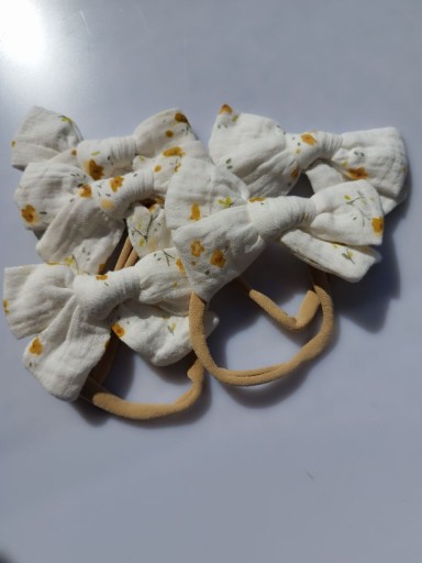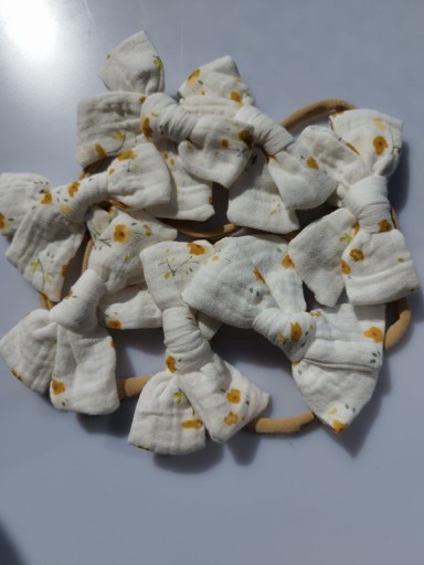 Opaska bezuciskowa kokardka dla niemowlaka dla dziewczynki muslinowa