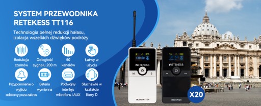 Retekess TT116 Bezprzewodowy System audio,Tłumaczeń z Redukcją Szumów 200m