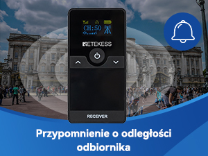 Gdy nadajnik i odbiornik przekroczą odległość, zostanie wyemitowane przypomnienie o przekroczeniu odległości, aby zapobiec upadkowi.