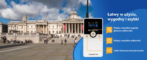 Zestawy słuchawkowe dla przewodników turystycznych oferują 50 różnych kanałów, dzięki czemu wiele wycieczek lub przewodników może działać na tym samym obszarze w tym samym czasie