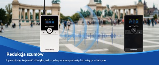 - Krystalicznie czysty dźwięk; system przewodników turystycznych ma silne właściwości przeciwzakłóceniowe; i otrzymuje ciągłe informacje z wyraźną jakością dźwięku; technologia redukcji szumów stosowana w tym systemie przewodnika turystycznego odfiltrowuje hałas otoczenia; zapewnienie, że dźwięk przesyłany do słuchacza jest wyraźny i łatwy do zrozumienia