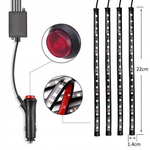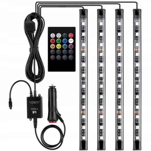 Jeśli chcesz zmienić coś w swoim aucie, aby wyglądał bardzo efektownie oraz lubisz robić wrażenie na innych, a może zwyczajnie potrzebujesz uzupełnić swoje standardowe oświetlenie w samochodzie- świetnie trafiłeś! Rozbudowany zestaw oświetleniowy zawiera, aż 48 diod LED, którymi możesz swobodnie sterować za pomocą pilota. 4 listwy z 12 punktami oświetleniowymi pozwolą Ci dostosować kolor oraz jasność do Twoich upodobań.