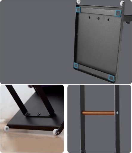 Stojak został wykonany z grubej i wysokiej jakości stali, co gwarantuje stabilność i długotrwałą wytrzymałość. Dzięki swojemu ergonomicznemu designowi, zapewnia wygodne przechowywanie różnorodnych akcesoriów, takich jak ssawki, szczotki czy dysze. Dzięki temu będą one zawsze łatwo dostępne podczas codziennych czynności sprzątania, co znacznie ułatwia utrzymanie porządku w domu. Stojak został również wyposażony w kółka i drewnianą rączkę co ułatwi mobilność odkurzacza ze wszystkimi akcesoriami.
