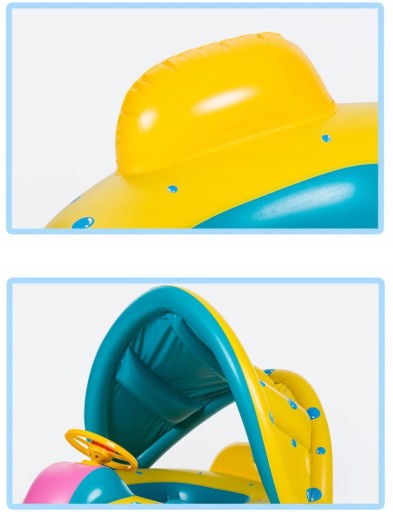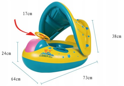Twoje dziecko będzie mogło bezpiecznie korzystać z kąpieli wodnych. Materacyk został wyposażony w specjalne siedzisko, dzięki czemu pomoże dziecku oswoić się z wodą. Daszek zapobiegnie poparzeniom słonecznym.