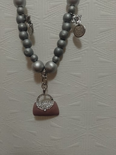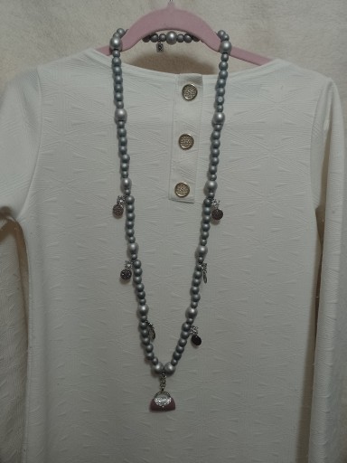 Oferuję Ekskluzywne korale w kolorze srebrnym ze zdobieniem Długość na szyi 51 cm - bez zawieszki, 56 cm z zawieszką