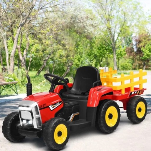 Traktor XMX611 z przyczepą, napędzany dwoma mocnymi silnikami 45 W z całą pewności zainteresuje młodego wielbiciela traktorów.