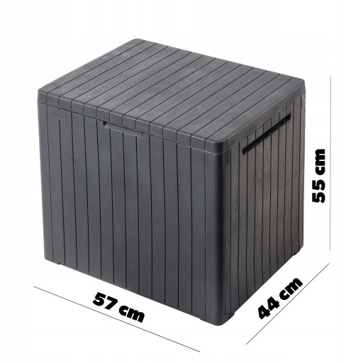 CITY STORAGE BOX to uniwersalny schowek do przechowywania dowolnych akcesoriów i narzędzi ogrodowych czy warsztatowych, jak również domowych przedmiotów codziennego użytku. Dzięki skrzyni wszystko w Twojej sypialni, łazience, garażu i ogrodzie staje się uporządkowane i łatwe do odnalezienia. Funkcjonalne, praktyczne rozwiązanie zarówno w domu, jak i na zewnątrz.Potrzebujesz schować najróżniejsze drobiazgi, ale nie masz miejsca w salonie na dodatkowy mebel? Nie ma problemu - CITY STORAGE BOX możesz przechowywać na balkonie bez obaw o niskie temperatury czy promieniowanie UV.Optymalna wielkość i pojemność . Bardzo prosty i szybki montaż oraz łatwość w utrzymaniu w czystości.