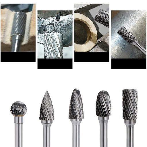 ZESTAW FREZÓW DO DREWNA METALU OBROTOWE TRZPIENIOWE PILNIKI TARNIKI WĘGLIK WOLFRAMU 6 SZTUK
