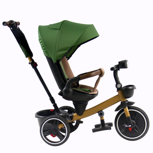 Oparcie w rowerku można rozłożyć jednym ruchem ręki, zarówno przodem, jak i tyłem do kierunku jazdy. Składana kierownica pozwala jeszcze bardziej rozłożyć oparcie. Rozkładane oparcie do pozycji leżącej zapewni dziecku komfort snu podczas każdego spaceru.\