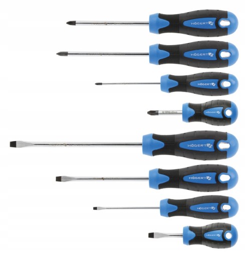 Zestaw 8 sztuk wkrętaków, odpornych na odkształcenia i uszkodzenia.