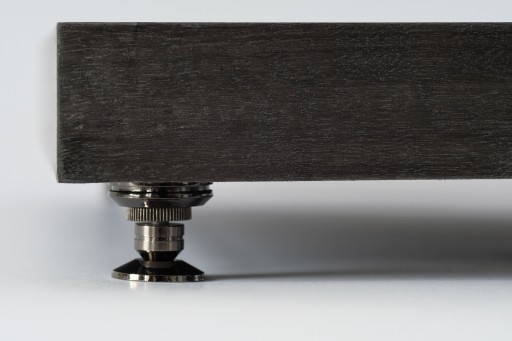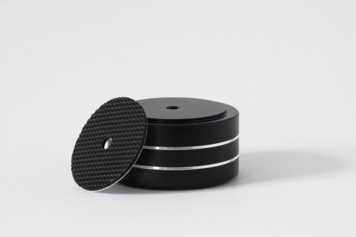 Platforma antywibracyjna naszej produkcji ma za zadanie separację / izolacje sprzętu audio od zewnętrznych wibracji wpływających w mniejszym lub większym stopniu na pracę systemu audio. Izolacja / separacja jest zrealizowana za pomocą kolcy zmniejszającymi do minimum styczność platformy z podłożem, jest to +/- 4 mm kw. dodatkowo kolec jest posadowiony na talerzyku z podklejonym filcem lub korkiem. Stosujemy też pady aluminiowo gumowe. Dodatkowym atutem naszej platformy jest budowa typu sandwicz i użycie materiałów o różnej gęstości a co za tym idzie tłumienie niskich częstotliwości. Budowa sandwicz dała nam możliwość stworzenia pustego rdzenia, który jest jednocześnie komorą balastową, dzięki temu nasza platforma ma zasyp piaskiem kwarcowym, który dzięki luźnemu zasypowi dodatkowo wytrąca energię wibracji.