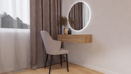 Nowoczesna toaletka, komoda z dwoma szufladami z dolnym uchwytem.