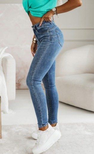 Dopasowane jeansy z przeszyciami push up doskonale podkreślają kobiecą sylwetkę. Posiadają wąskie nogawki oraz przeszycia na tylnych kieszeniach. Praktyczne kieszenie o standardowym rozmieszczeniu, zapięcie na zamek, szlufki i guzik, gwarantują funkcjonalność i łatwość w zakładaniu. To absolutny must-have dla tych, którzy pragną podkreślić swoje kształty i czuć się pewnie w każdej sytuacji! Spodnie wzorowane na popularnej marce Levi.