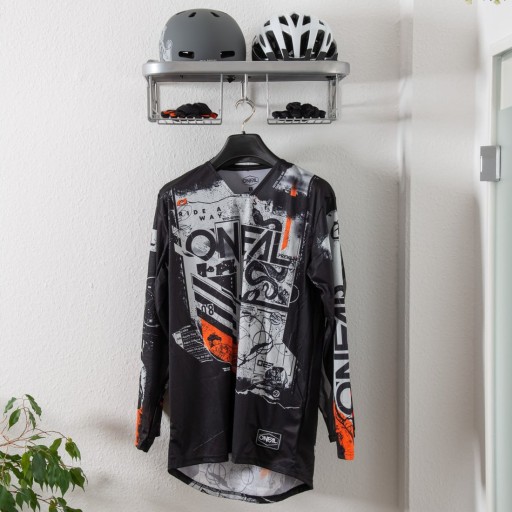 Idealny do garderoby, garażu by cały ubiór motocyklowy mieć pod ręką i był ładnie wyeksponowany. Przewidziana dla dwóch osób, ma miejsce na dwa kaski, dwie pary rękawic oraz specjalna szynę do powieszenia kurtek.