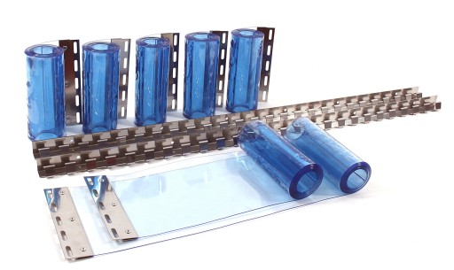 - pasy PCV z płytkami mocującymi – pasy PCV są przycięte na odpowiednią długość, na każdym pasie jest przynitowana płytka mocująca ze stali nierdzewnej,