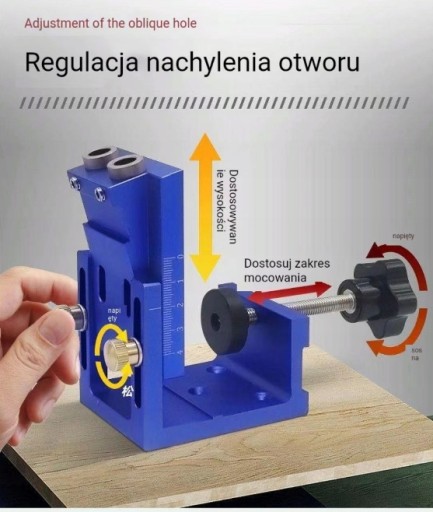 Przyrząd, który idealnie sprawdzi się przy wykonywaniu niewidocznych połączeniach kieszeniowych. Pozwala on na wywiercenie otworów pod odpowiednim kątem. Połączenia kieszeniowe polegają na nawierceniu pod skosem otworu na odpowiednią głębokość, a następnie wkręceniu wkrętu, który będzie trzymał oba łączone elementy.