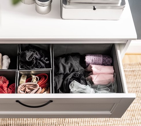 Super zestaw pojemników do szafy czy komody. Dzięki tym organizerom w Twoich szafkach zagości porządek. Twoja bielizna, biżuteria, paski i wiele innych rzeczy znajdzie swoje miejsce. Wszystko będzie ładnie posegregowane dzięki czemu zaoszczędzisz wielu czasu na szukaniu potrzebnej rzeczy. Kiedy pojemniczek będzie pusty można go złożyć by zaoszczędzić miejsce.