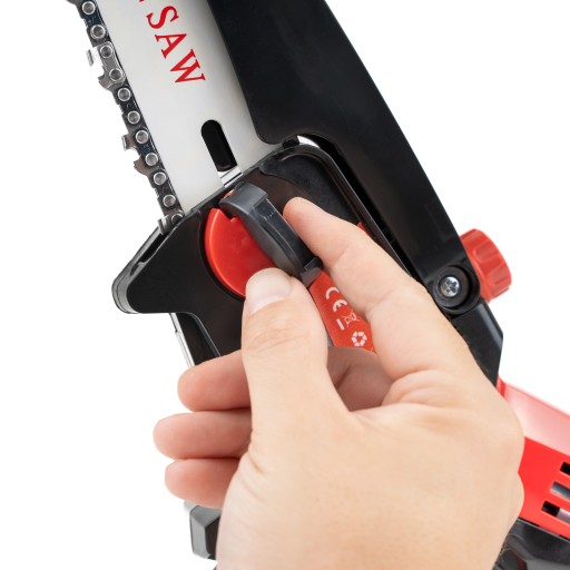 - Osłona na spust. Konstrukcja naszej piły stworzona jest tak aby maksymalnie zabezpieczać przed potencjalnie niebezpiecznymi zdarzeniami. Osłonka na palec spustowy chroni Cię przed uderzeniem lub przecięciem
