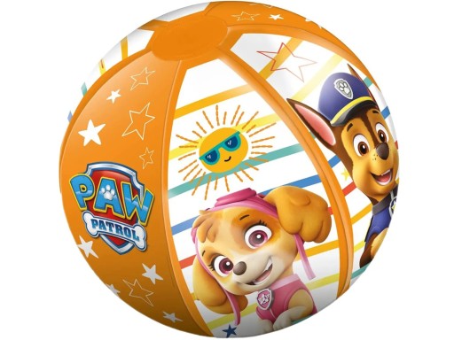 Piłka plażowa z ulubionymi bohaterami bajki Psi Patrol. Piłka duża, 50cm idealna do zabawy na świeżym powietrzu, można zabrać ją ze sobą na plażę, idealnie sprawdzi się też do zabawy w ogrodzie. Wykonana z mocnego i wytrzymałego materiału winylowego.