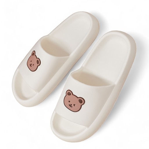 Świetne damskie gumowe klapki na płaskiej podeszwie, paseczek zdobiony uroczym misiem. Idealny wybór na wakacje!